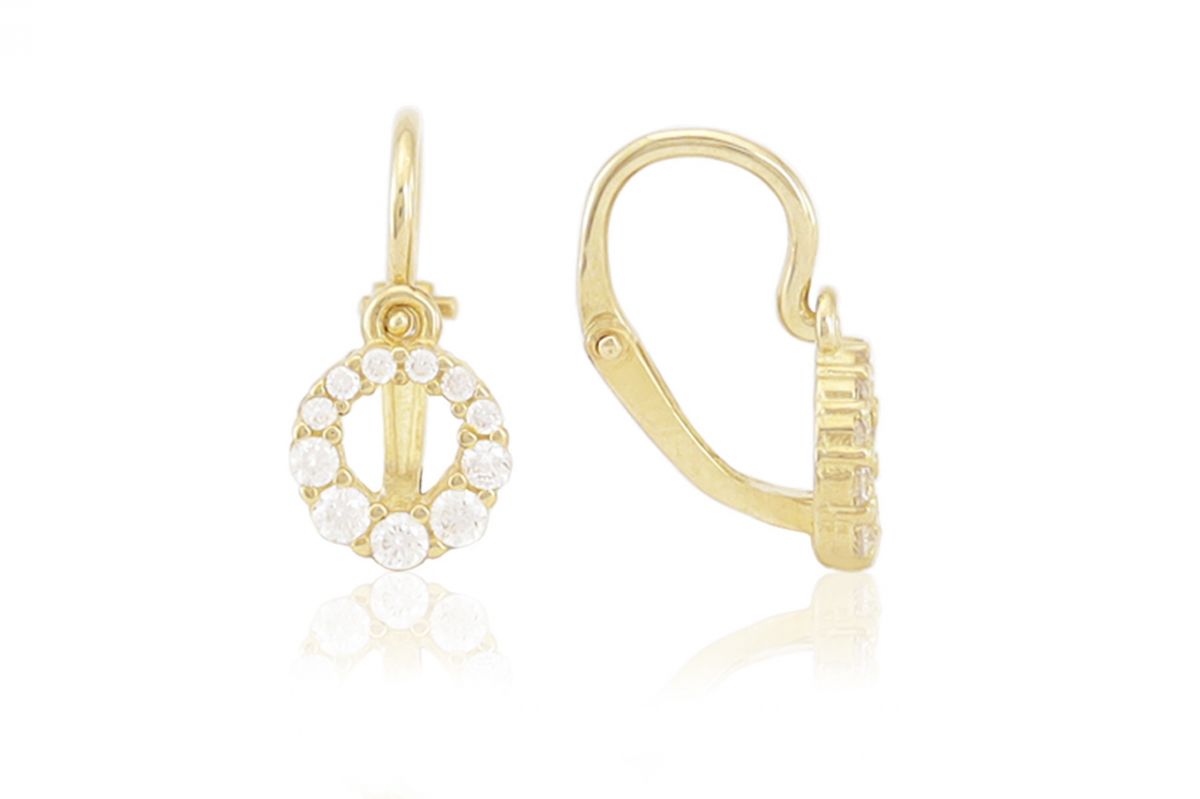 Arany baba fülbevaló elölkapcsos kör fehér kövekkel