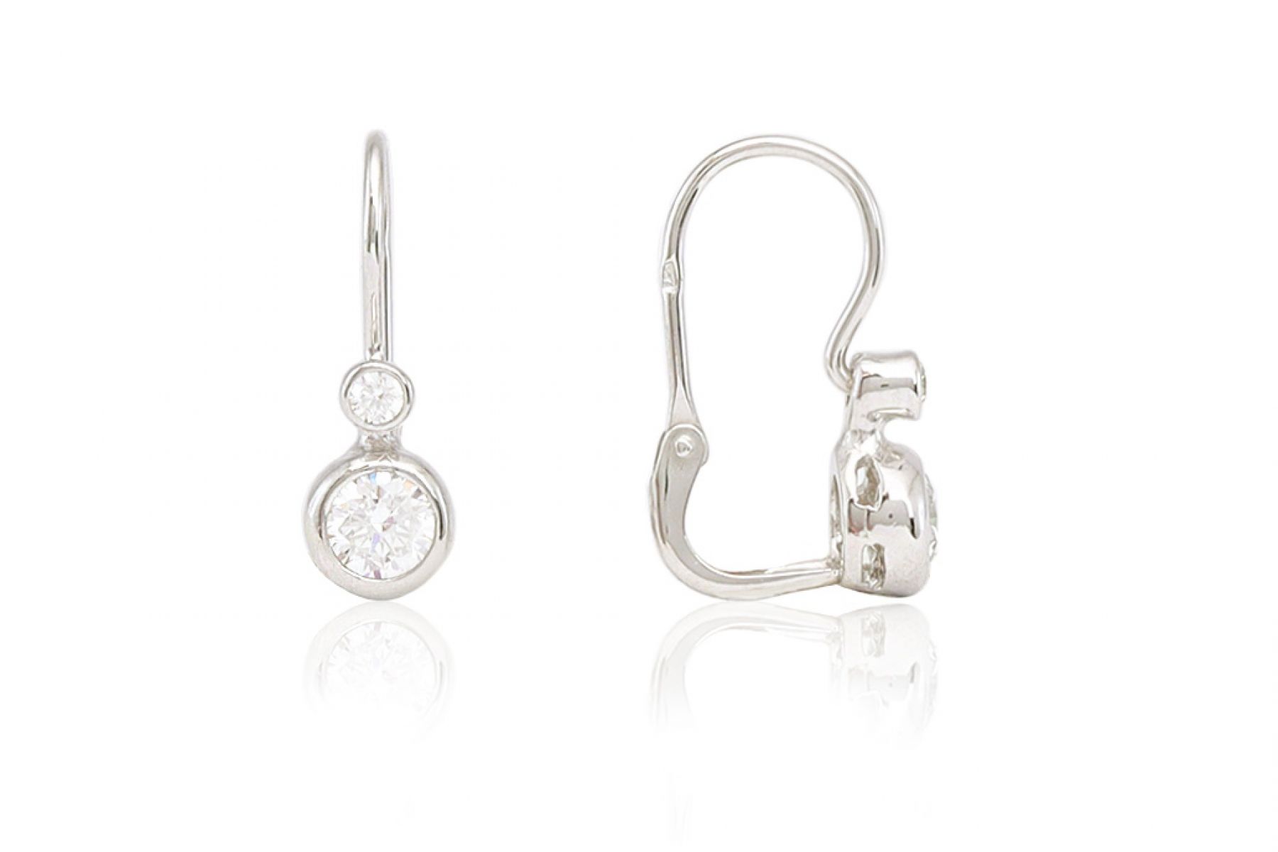 Ezüst fülbevaló elölkapcsos kétköves button ródiumbevonatos