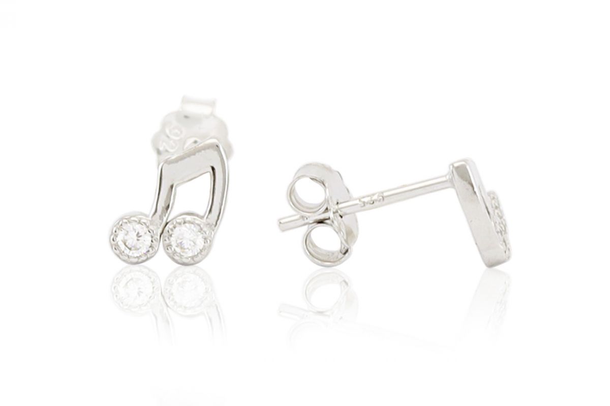 Ezüst fülbevaló bedugós kővel díszített hangjegy
