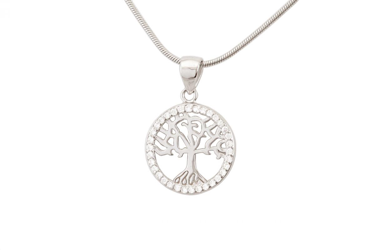 Ezüst medál kövekkel kirakott áttört életfa ródiumbevonatos