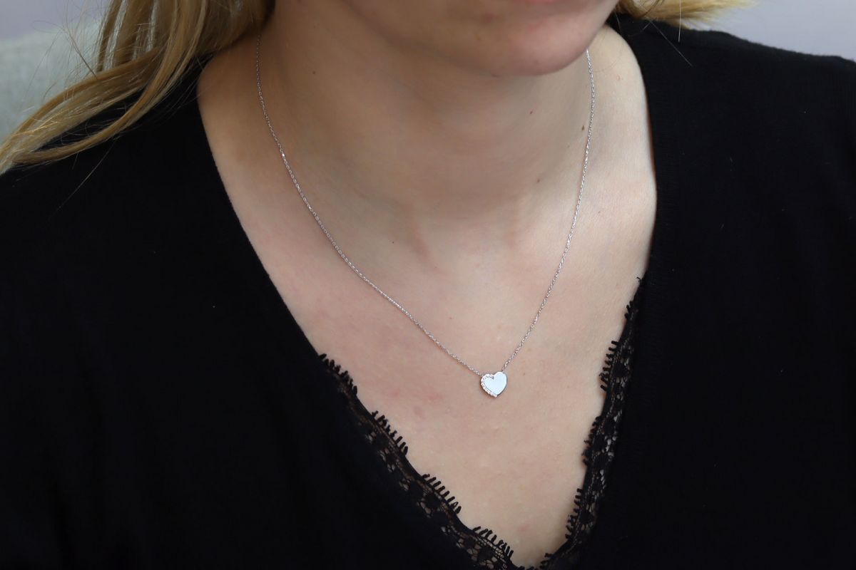Fehér arany nyaklánc vékony Anker félig köves szívecske medállal