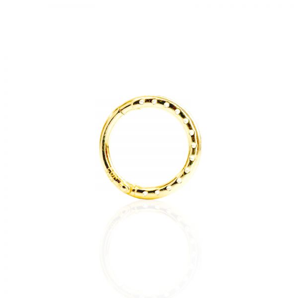 A kifinomult stílus és a hétköznapi elegancia találkozása ez az arany színű, kristályokkal díszített piercing. Kiváló minőségű, tartós anyagból készült, így nemcsak gyönyörű, hanem praktikus választás is. Tökéletes fülbe, orrba vagy akár más testékszerként is, így sokoldalúan viselhető. A ragyogó kövek diszkréten csillognak minden fényben, így viselője mindig a figyelem középpontjába kerülhet – még akkor is, ha csak magáért ragyog. Ajándéknak is ideális, hiszen letisztult dizájnja minden korosztályban sikert arat. Ha szereted a csillogást, de a visszafogott elegancia híve vagy, akkor ez a piercing neked készült!