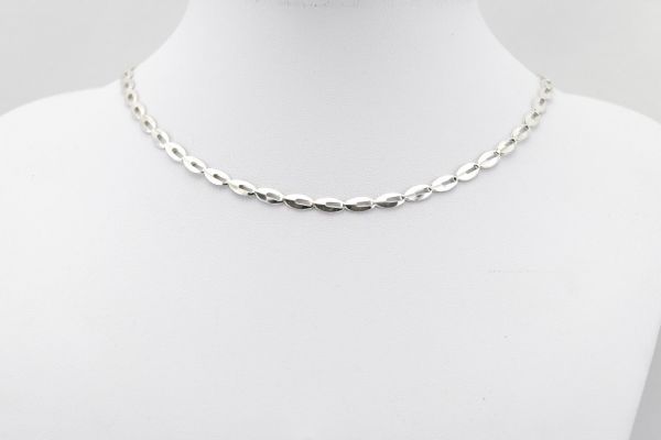 Ez az ezüst lánc azért különleges, mert minden szemén egy elegáns, kávészemmintázatra emlékeztető dekoráció van. Könnyű, csillogó, egyszerre elegáns és egyedi.