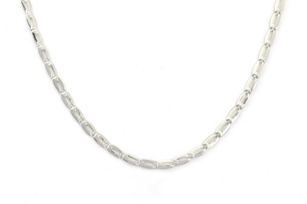 Egyszerre elegáns és különleges ez a préselt szemekből készült, szögletes "kávészemes" ezüst nyaklánc. Mindenféle öltözethez tökéletes, akár rétegezett nyaklánc részének is, de önmagában is szép, egyedi ékszer.