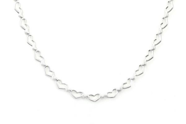 Egyszerre szépséges, vidám és romantikus ez az ezüst préselt szívecske-szemekből készült lánc!