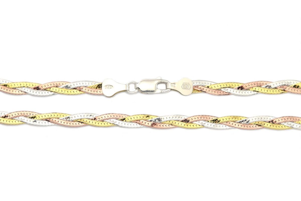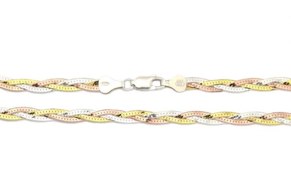 Ezüst karkötő fonott trikolor 5mm széles