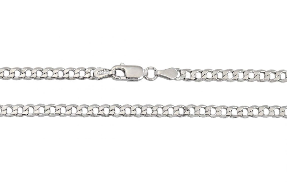 Elegáns és egyszerű, de mégis izgalmas ez a ródiumbevonatú széles pancer ezüst karlánc.