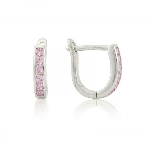 Ezüst fülbevaló franciazáras keskeny kivitelű apró rózsaszín kövekkel