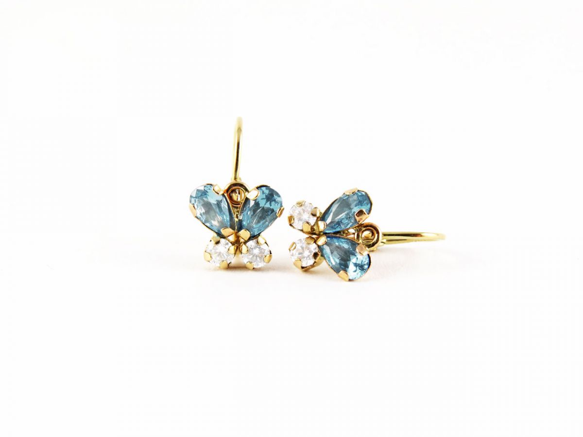 Meg vagyunk győződve arról, hogy nincsen a Föld kerekén olyan kislány, akinek ne dobogtatná meg a szívét ez a 14 karátos aranyból készült, kék és fehér cirkónia kövekkel díszitett pillangós fülbevaló.