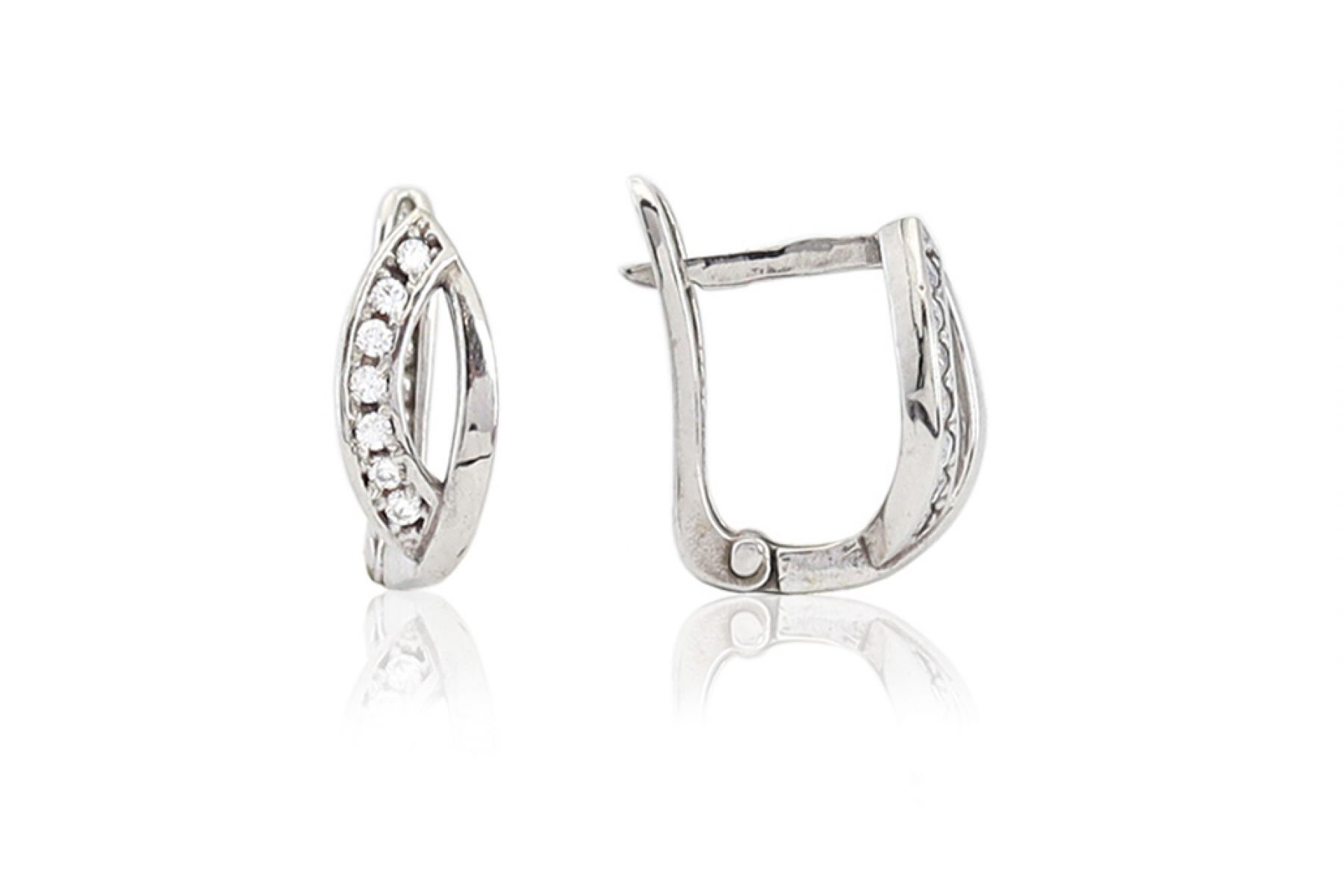 Egyszerre elegáns és modern ez a 14 karátos fehér aranyból készült, apró fehér cirkónia kövecskékkel díszített fülbevaló! Ajánljuk minden olyan hölgynek vagy leányzónak, aki szeretne egy aprócska új ékszert, melyet örömmel viselhet a legkülönbözőbb alkalmakra, a legkülönbözőbb ruhákhoz és öltözetekhez. :)