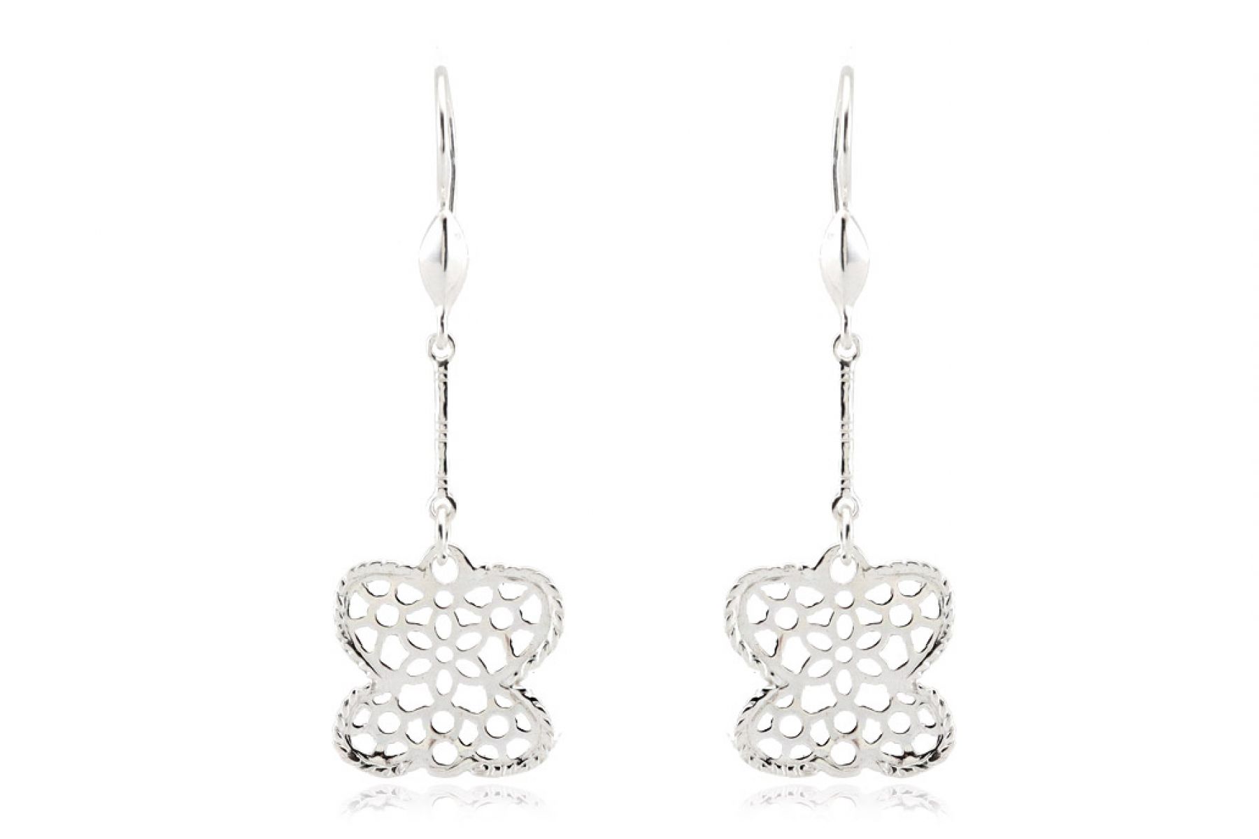 Különösen finom és elegáns ez a hosszú, könnyű, áttört pillangós ezüst fülbevaló.