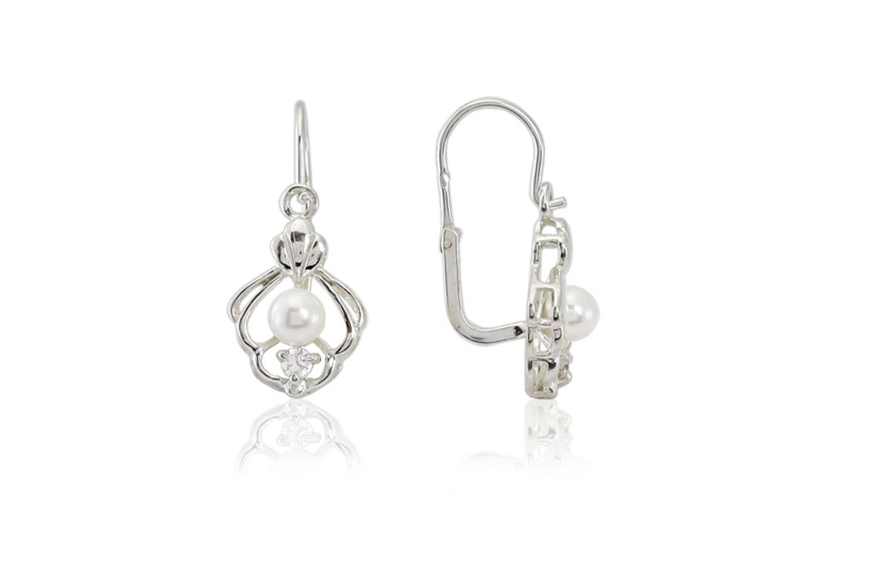 Ezüst fülbevaló előlkapcsos csipkemintás gyönggyel