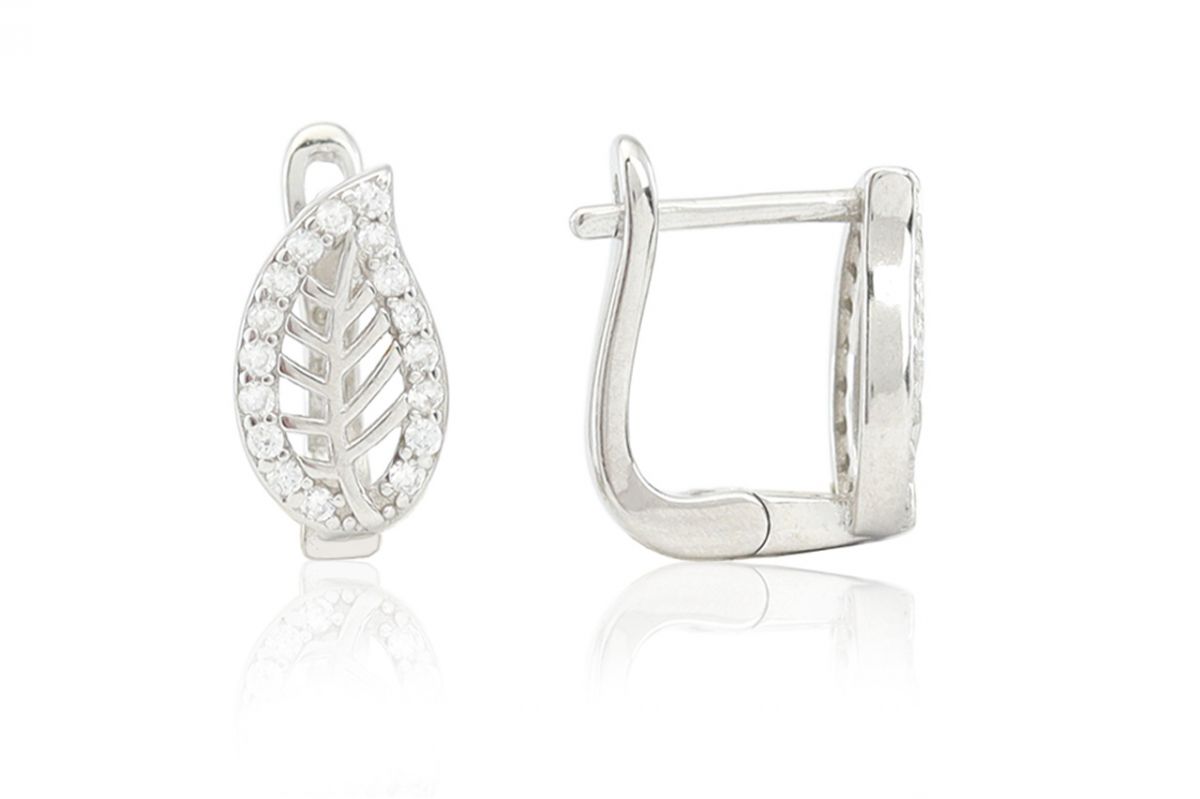Ezüst fülbevaló franciakapcsos áttört köves levél ródiumbevonatos