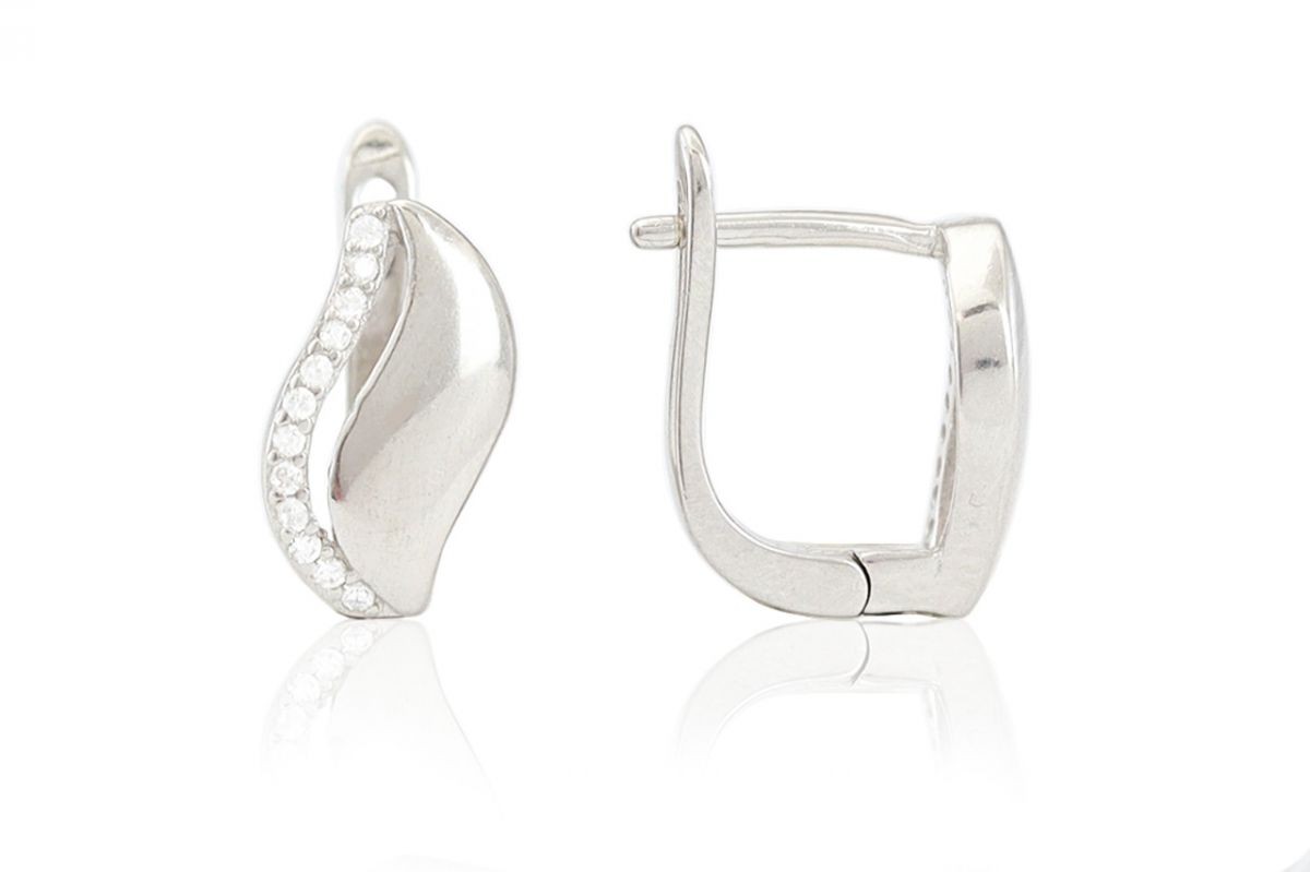 Ezüst fülbevaló franciakapcsos elegáns áttört íves köves ródiumbevonatos