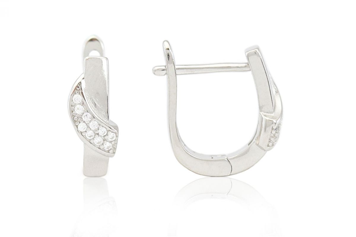 Ezüst fülbevaló franciakapcsos elegáns íves köves díszítéssel ródiumbevonatos