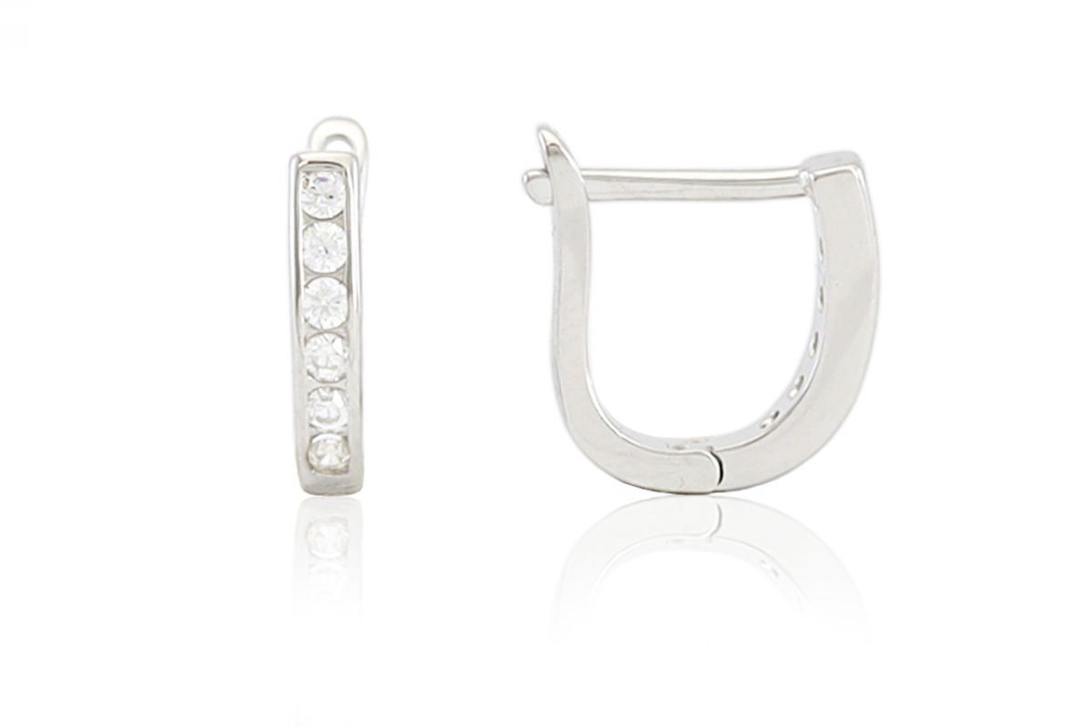 Ezüst fülbevaló franciazáras keskeny kivitelű apró fehér kövekkel ródiumbevonatos