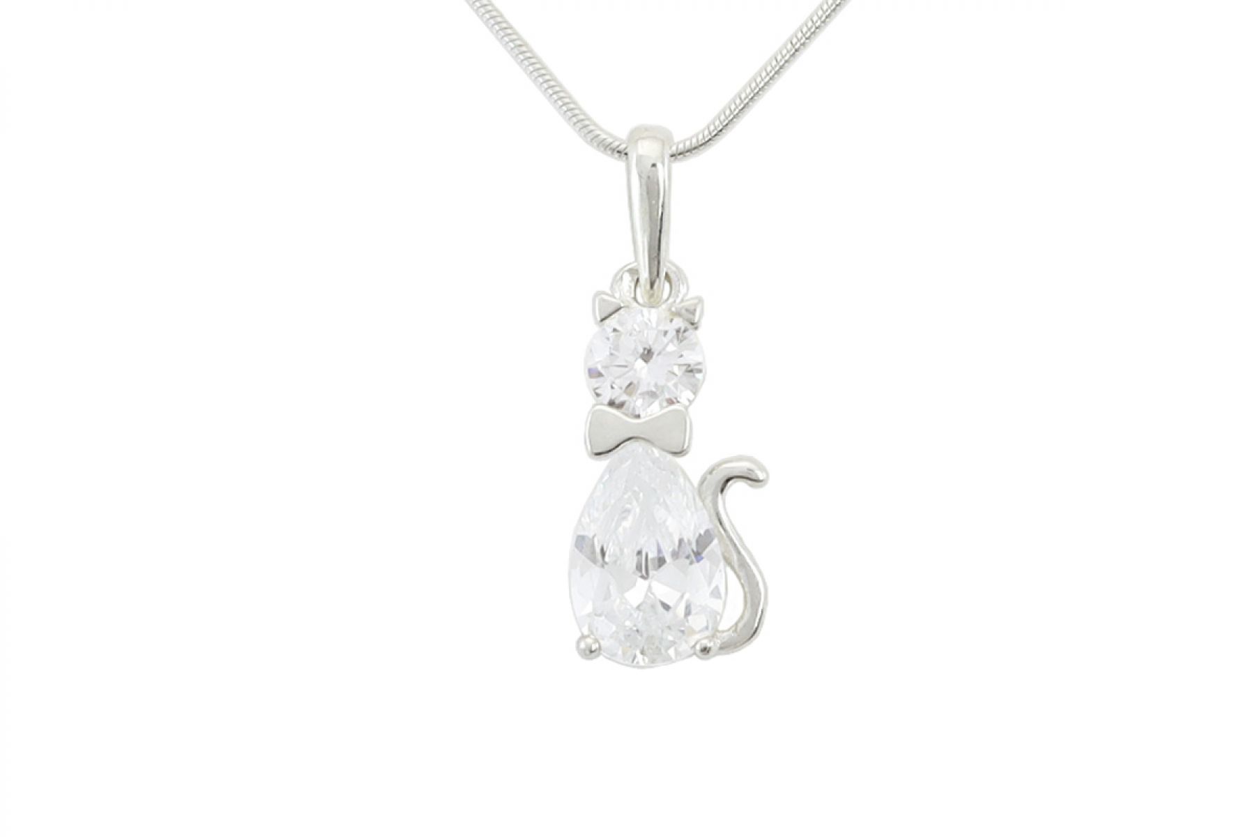 Igazán bájos ez az ezüst, kövekkel kirakott cica medál!