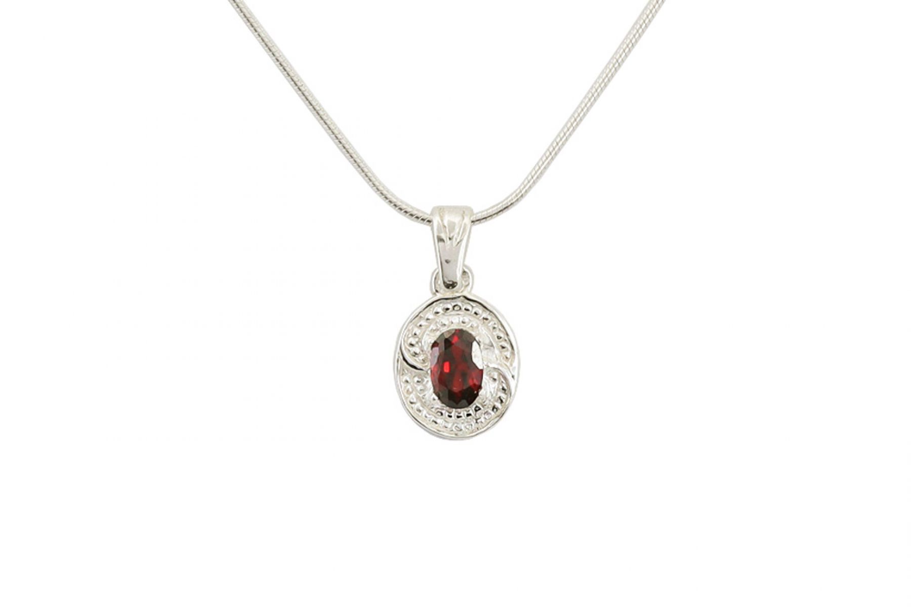 Ezüst medál klasszikusan elegáns stílusú piros kővel