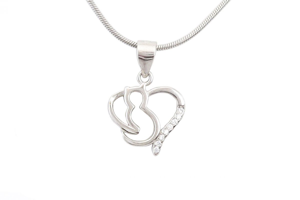 Ezüst medál szív cicával ródiumbevonatos