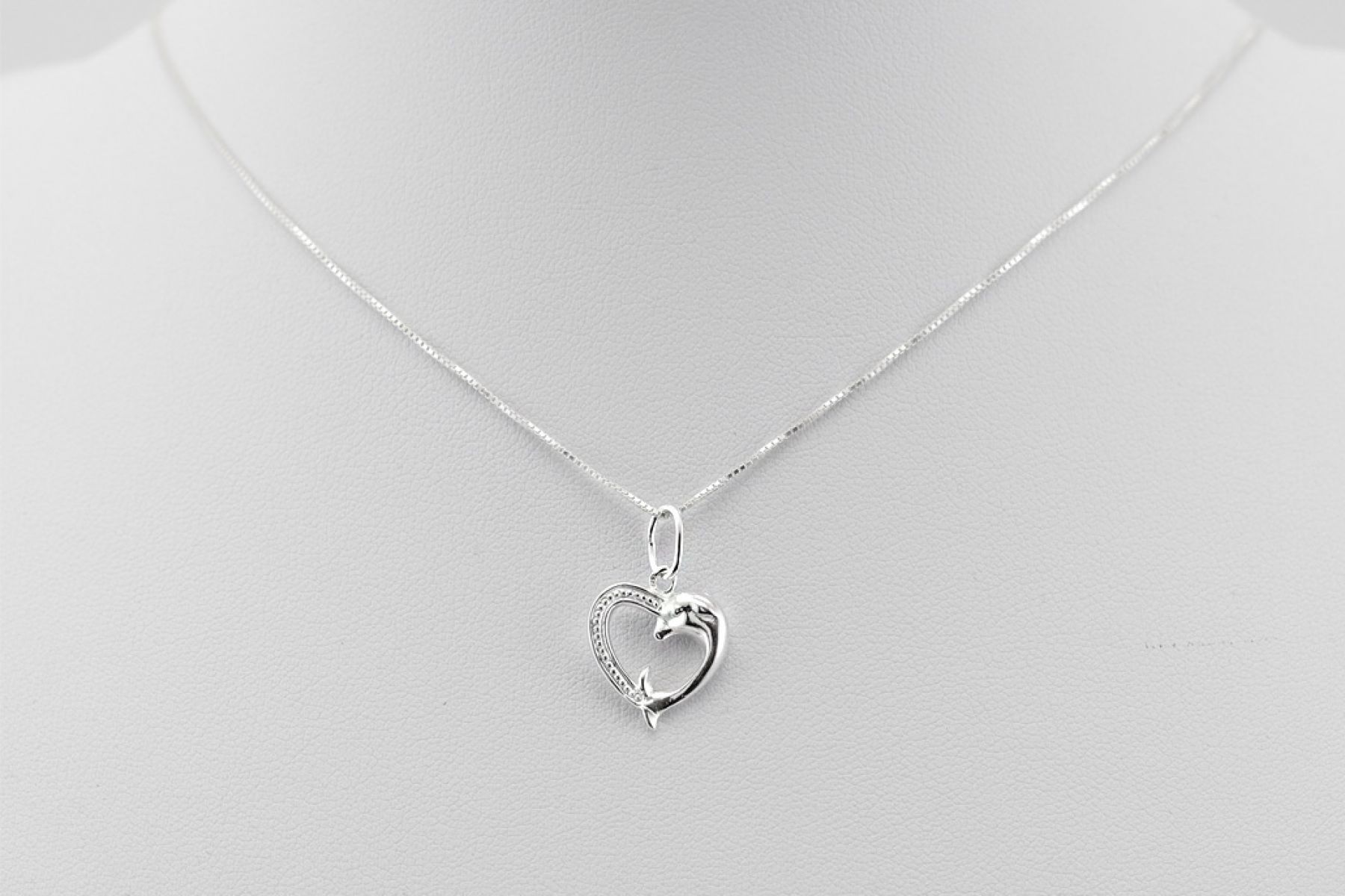 Nőies, romantikus delfinimádó hölgyeknek ajánljuk ezt a szépséges, szívecske és delfin mintás ezüst medált