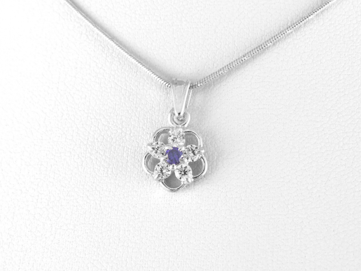 Gyönyörű és elegáns ez az apró, lila cirkóniával díszített ezüst virágos medál.