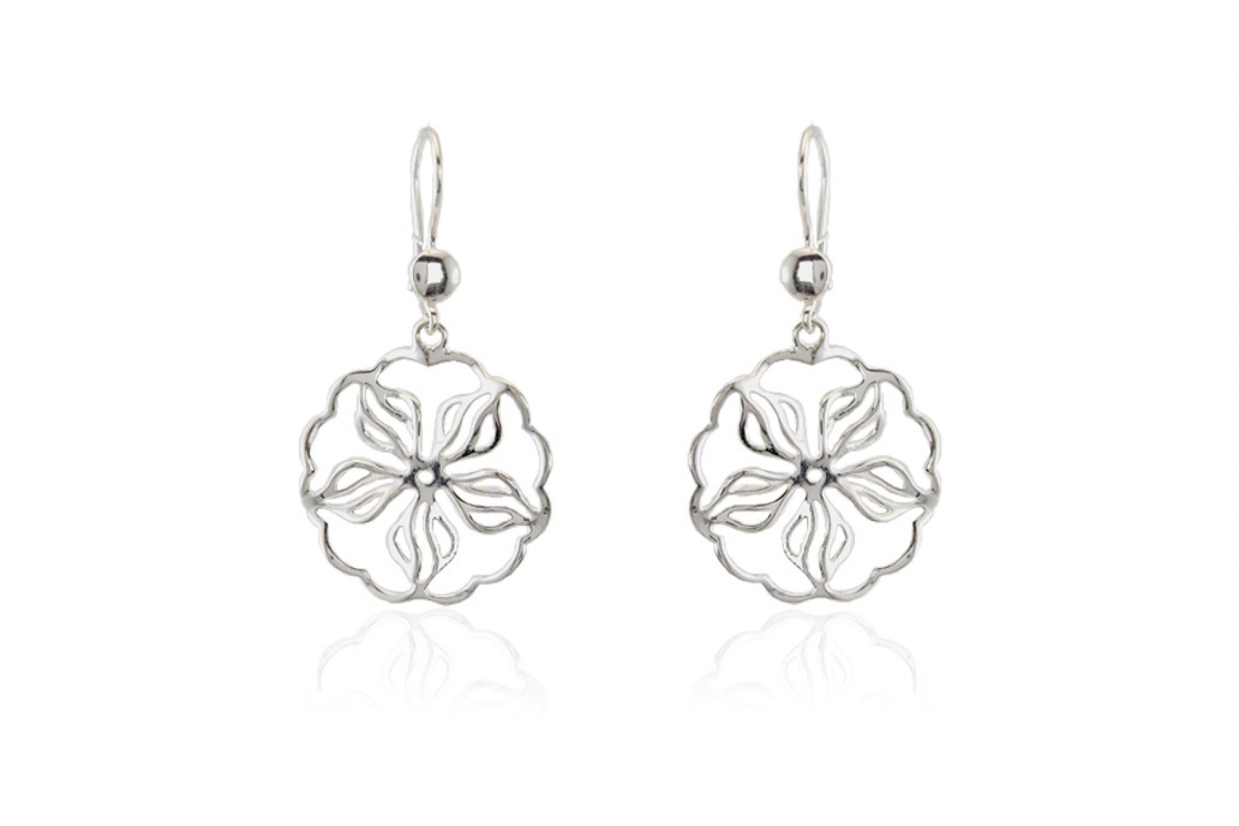Ezüst fülbevaló beakasztós áttört virág